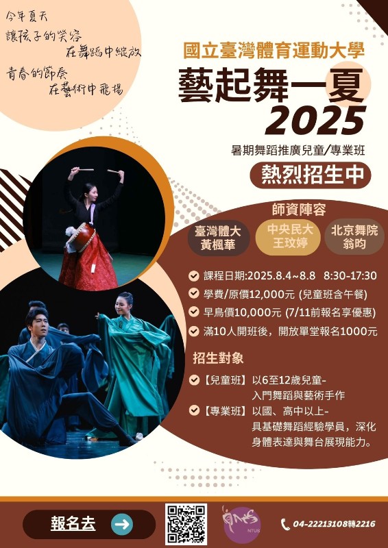 專業班:以國、高中生至成人為主,針對具備基礎舞蹈經驗之學員,進一步深化身體表達與舞台展現能力,挑戰更高層次的藝術實作。 |