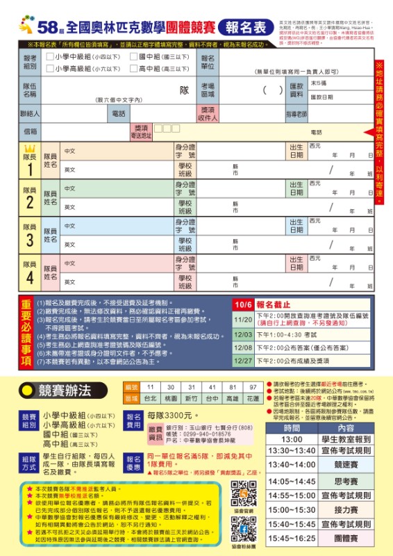 檢附「第58屆全國奧林匹克數學團體競賽」競賽活動簡章,供 貴校參閱。