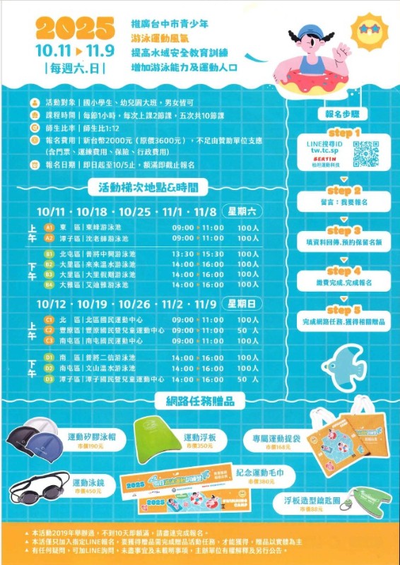 轉知游泳運動訓練營相關圖文,歡迎學生及家長參考。