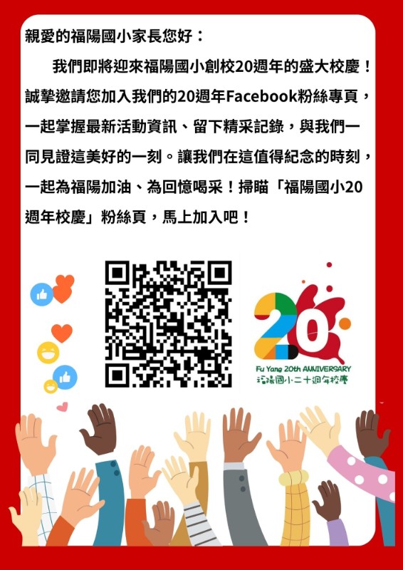 附圖附上20週年校慶粉絲專頁圖,歡迎各位校友、家長案讚關注!