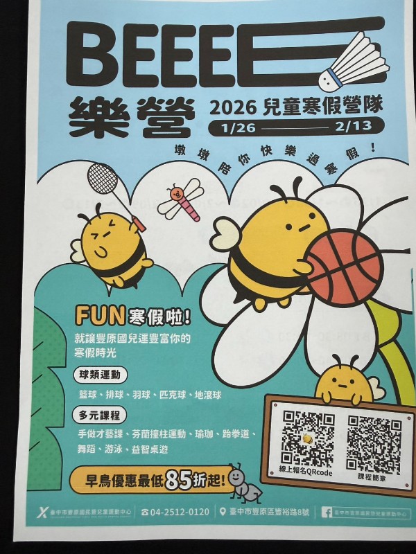 轉達豐原運動中心-寒假羽球營與游泳相關課程-歡迎各位家長參考