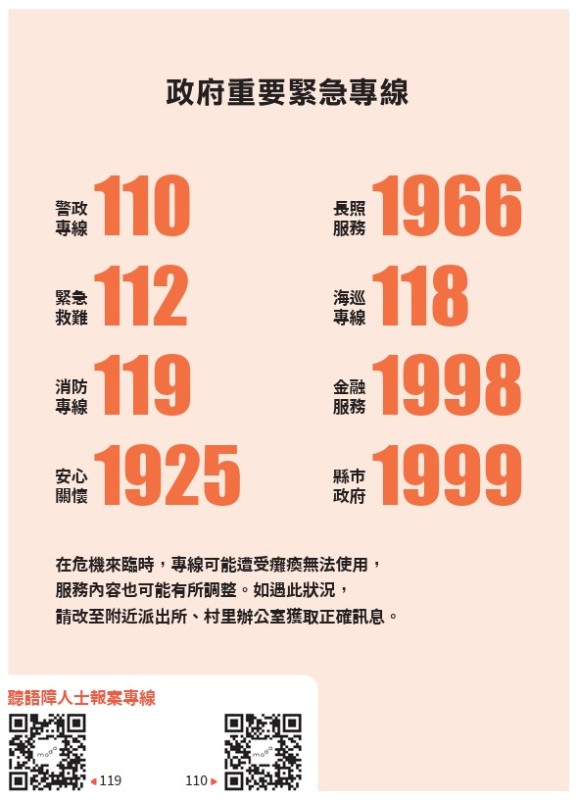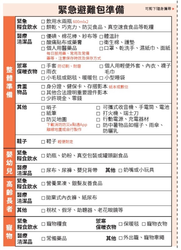 資料引自:全民安全指引專區https://www.edu.tw/PrepareEDU/Default.aspx、全民安全指引網頁https://prepare.mnd.gov.tw/ |