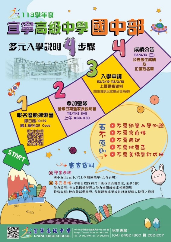 轉知~宜寧高中國中部潛能探索營隊招生簡章(歡迎小六學生與家長參考報名)