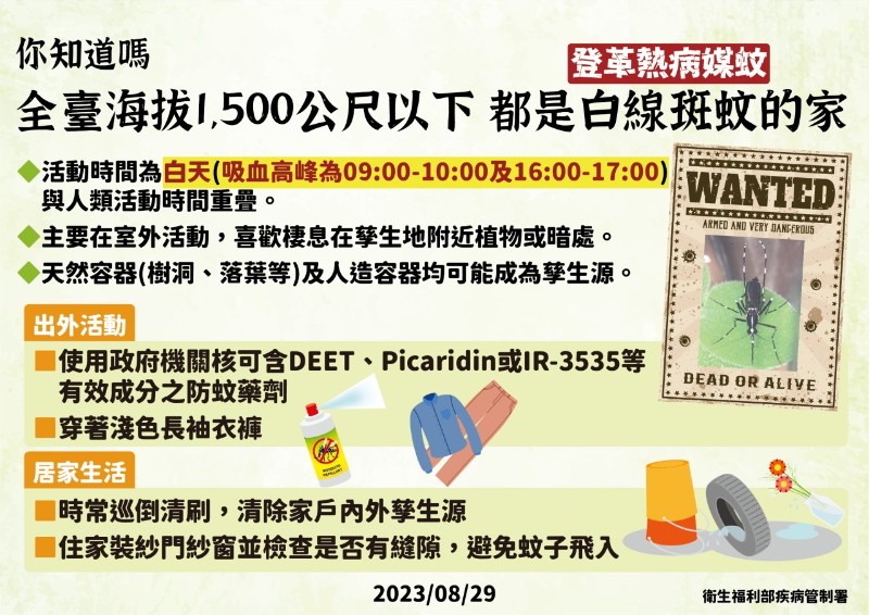 中市新增1例本土登革熱NS1快篩陽性 呼籲至風險流行地區務必防蚊 https://www.taichung.gov.tw/2456740/post 台中市政府衛生局於昨(19)日接獲醫院通報登革熱抗原快篩NS1陽性個案,有雲林縣活動史,已通知個案台中市居住所在地的南區公所開設區級指揮中心防治會議,執行居住地及活動地登革熱防治工作。 衛生局表示,疫調發現,該案為50多歲女性,潛伏期間於8月26、27日及9月9日至雲林古坑,9月14日出現發燒、咳嗽,就醫未改善,18日因症狀持續且出現紅疹,昨日至醫院就醫採檢NS1快篩陽性,其檢體送中央檢驗中,同住家人2人現階段無不適症狀,衛生單位將進行同住家人健康追蹤,並評估安排採檢。 衛生局長曾梓展表示,依據疾病管制署統計資料至昨日,台中市共有29例境外移入及16例本土登革熱確定個案,境外移入來源皆為東南亞國家,至昨日已有6例本土登革熱個案監測期滿,其餘本土個案及大里區群聚事件將陸續疫情監測至10月10日,請市民朋友務必落實防蚊及提高警覺。 曾局長呼籲,國內本土登革熱疫情嚴峻,許多縣市陸續出現本土登革熱個案,大里區也出現本土登革熱群聚疫情,請市民朋友務必做好防蚊措施,居家使用紗窗、紗門、夜晚睡覺可懸掛蚊帳,外出時穿著淺色薄長袖、長褲,並搭配使用含敵避、派卡瑞汀、IR3535等成分的防蚊液,避免蚊蟲叮咬而染疫;如14天內曾至國內登革熱流行地區或自東南亞地區的市民朋友,如出現發燒、肌肉骨頭痠痛、頭痛、後眼窩痛、出疹等疑似登革熱症狀,請提高警覺儘速就醫,主動告知旅遊活動史,以利醫師評估通報,縮短登革熱疾病隱藏期,提升登革熱防治時效。 另呼籲台中市各級醫療院所提高警覺,因第一型登革熱症狀不典型,且近期同時有流感及新冠肺炎疫情於社區內流行,部分症狀類似,請醫療院所看診時務必加強詢問TOCC,經醫師評估後如有出現發燒、頭痛、肌肉痠痛、後眼窩痛等疑似登革熱症狀,請配合執行登革熱NS1抗原快篩輔助診斷,不論NS1快篩結果為何,皆請於24小時內通報衛生單位,避免本土登革熱疫情擴大。 衛生局說明,近期氣候持續炎熱,雖降雨情形已趨緩,但只要有0.5公分的積水,就可能產生病媒蚊幼蟲孑孓,請市民朋友落實居家戶內外容器減量,加強居家環境「巡」、「倒」、「清」、「刷」,協力防治登革熱,如經查獲積水容器有孑孓,最高可處1萬5000元罰鍰,請市民朋友務必一起動起來,維護自身及家人健康。 衛生局表示,南部縣市陸續出現本土登革熱重症死亡個案,為維護家中的長輩、幼兒或孕婦健康,針對境外移入或本土個案的居住地、活動地,市府團隊及區公所等將積極協力執行登革熱病媒蚊孳生源清除及化學防治工作,針對本土個案,化學防治範圍以個案住家半徑50公尺,執行每一個家戶戶內噴藥化學防治,戶外半徑200公尺噴藥化學防治,請市民朋友主動配合清除孳生源及到場配合化學防治,若有拒絕、規避或妨礙防治工作情形,最高可處30萬元罰鍰,呼籲市民朋友務必配合防治政策,以利提升防治時效及降低本土登革熱疫情擴大風險。(9/20*10)*衛生局 聯絡人:台中市政府衛生局 吳科長 聯絡電話:04-25265394分機3500