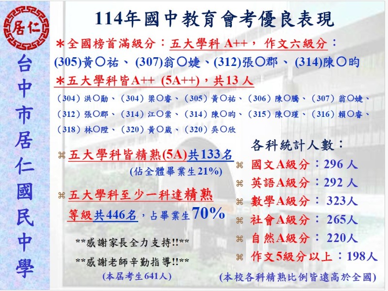 | 標題 | 狂賀~本校114 年升學成績表現優異榜單,再創高峰 |