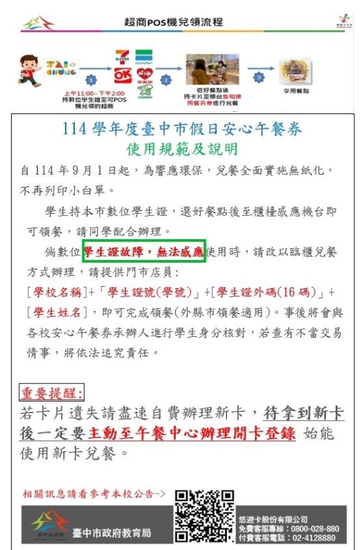 提供學生證故障時之兌餐辦法,請參考相關資訊。