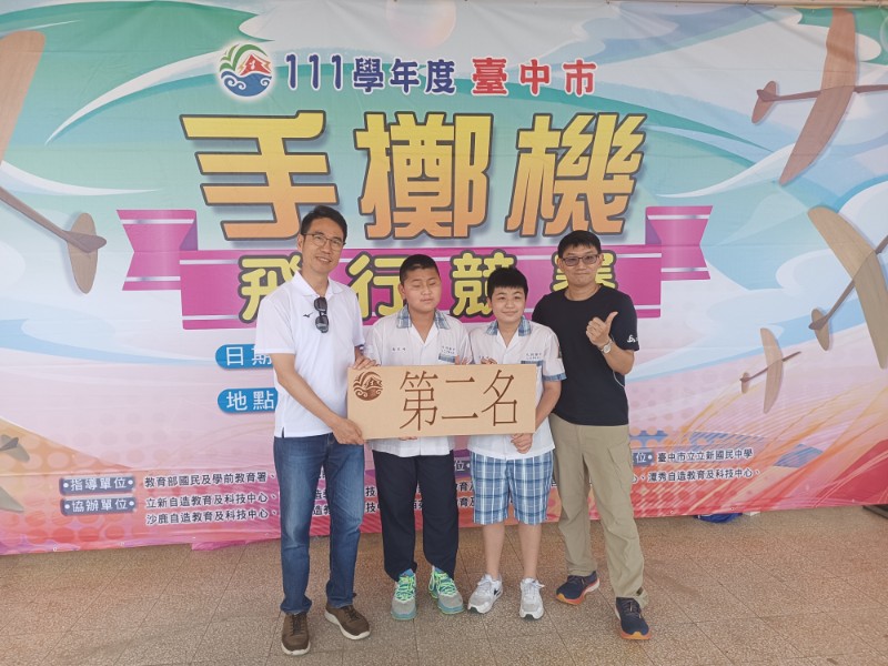 🎊🎊🎊恭喜北新國中參加111學年度臺中市手擲機競賽,今天4月12日上午進行比賽,吸引全市國中、小共190隊參賽競技,競爭激烈,恭喜北新國中榮獲國中組第二、三、四、五名,獲獎🏆同學如下:第(2)名 廖宣皓、吳宥昕第(3)名 張宸鈞、陳鈺儒第(4)名 劉正鋆、林宥呈第(5)名 林則軒恭喜獲獎同學,感謝為校爭光!💖非常感謝指導老師楊雋皓老師的辛苦付出!❤️感謝北新科技中心世南主任的辛苦協助!這個比賽變化莫測,手擲滑翔機競賽過程中,只能用手擲為動力,不能使用外部動力來進行拋擲升空,以空中滯留時間計算成績的高低,「滯空飛行」最久為獲勝。非常感謝🙏楊雋皓老師及參賽同學犧牲午休及假日辛苦練習,終於拿到很棒的成績!👍👍👍