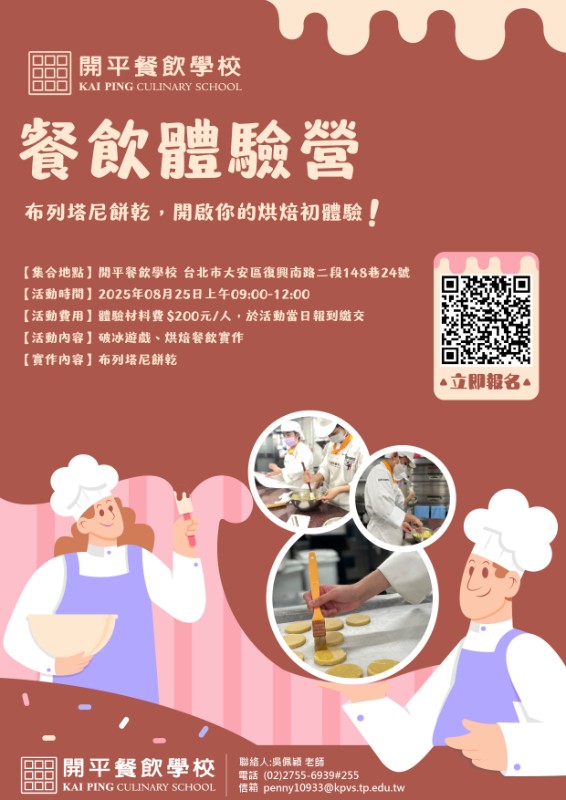 「開平餐飲學校114學年度餐飲體驗營」實施計畫,請同學踴躍報名。 |