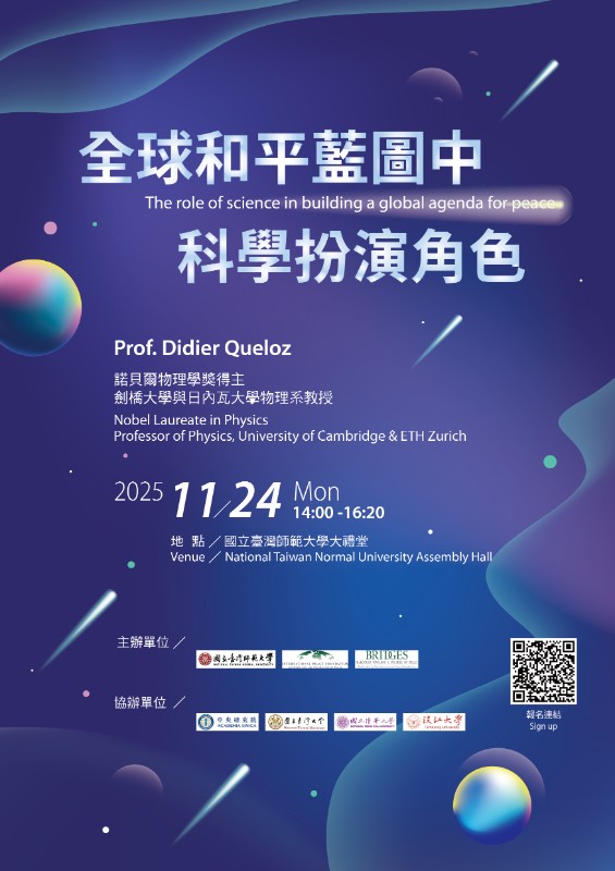 | 標題 | 轉知國立臺灣師範大學舉辦「諾貝爾物理學獎得主Didier Queloz教授講座」訊息 |