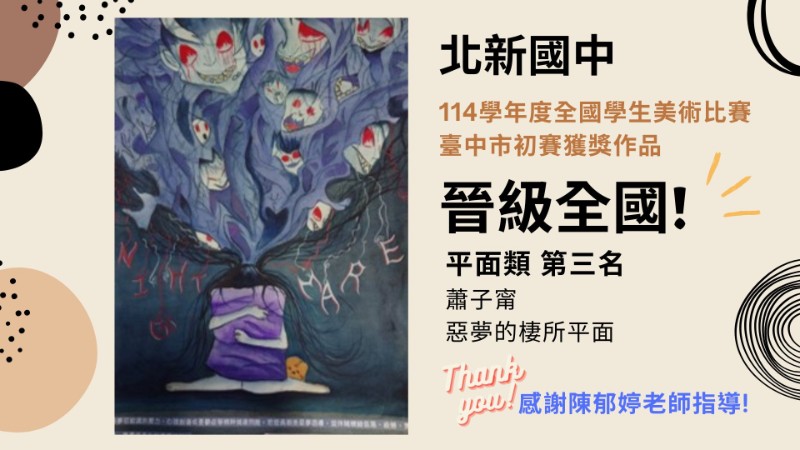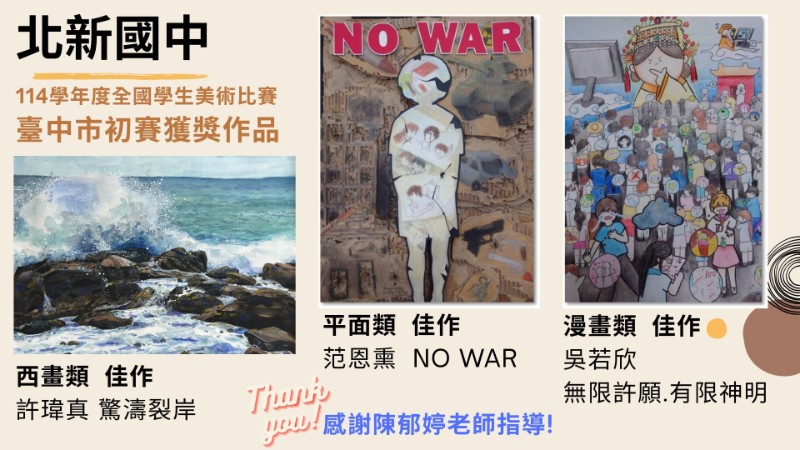 狂賀!北新國中114學年度全國學生美術比賽臺中市初賽榮獲佳績!
