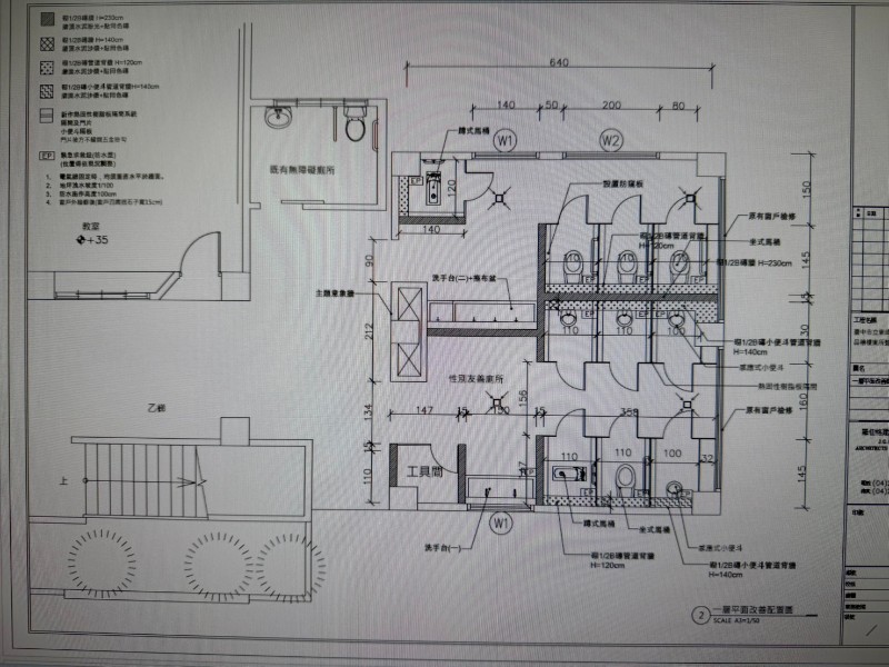 品德樓廁所改造平面圖,供學校全體師生提供意見