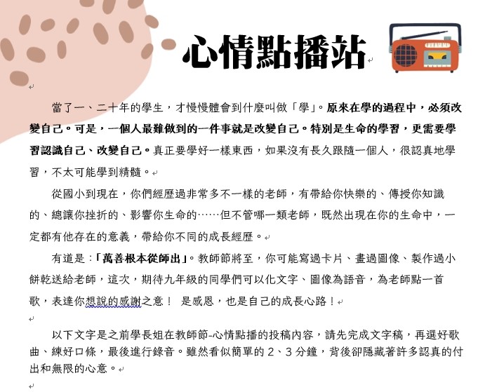 112學年度教師節活動-心情點播讚