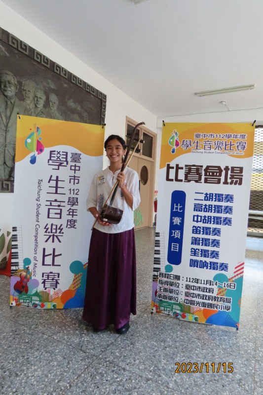 815陳瑞心 中胡獨奏 優等第二名 代表參加全國賽