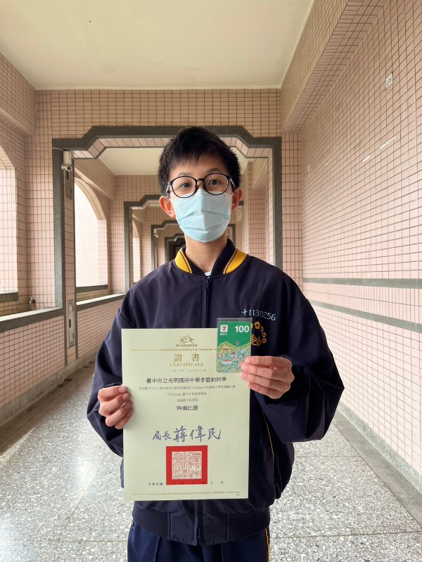 賀!本校學生參加臺中市113學年度結合教育部酷英(Cool English)英語線上學習獎勵計畫「TC Karaoke臺中K歌認證專區」通過國中組認證。