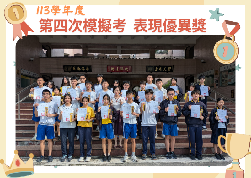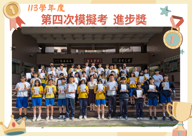 恭喜以下同學113學年度第四次模擬考的努力付出