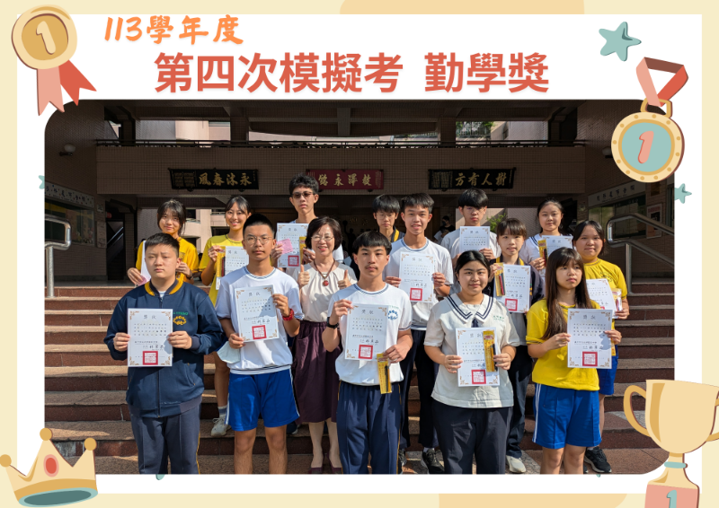 113學年度第四次模擬考 表現優異獎、勤學獎、進步獎頒獎