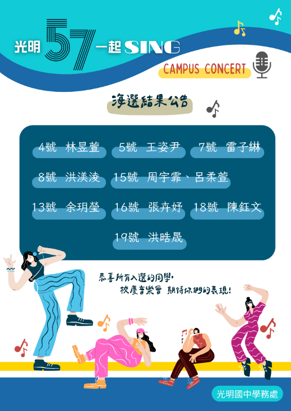 114學年度 校慶音樂會 海選結果公告