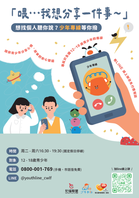兒福聯盟免費的《少年專線》,等你來分享故事~