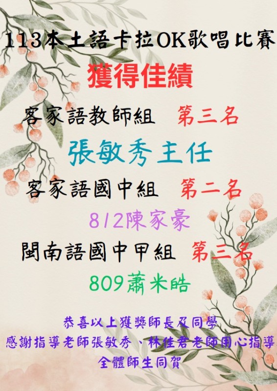 臺中市113學年度國民中小學本土語文卡拉OK歌唱比賽