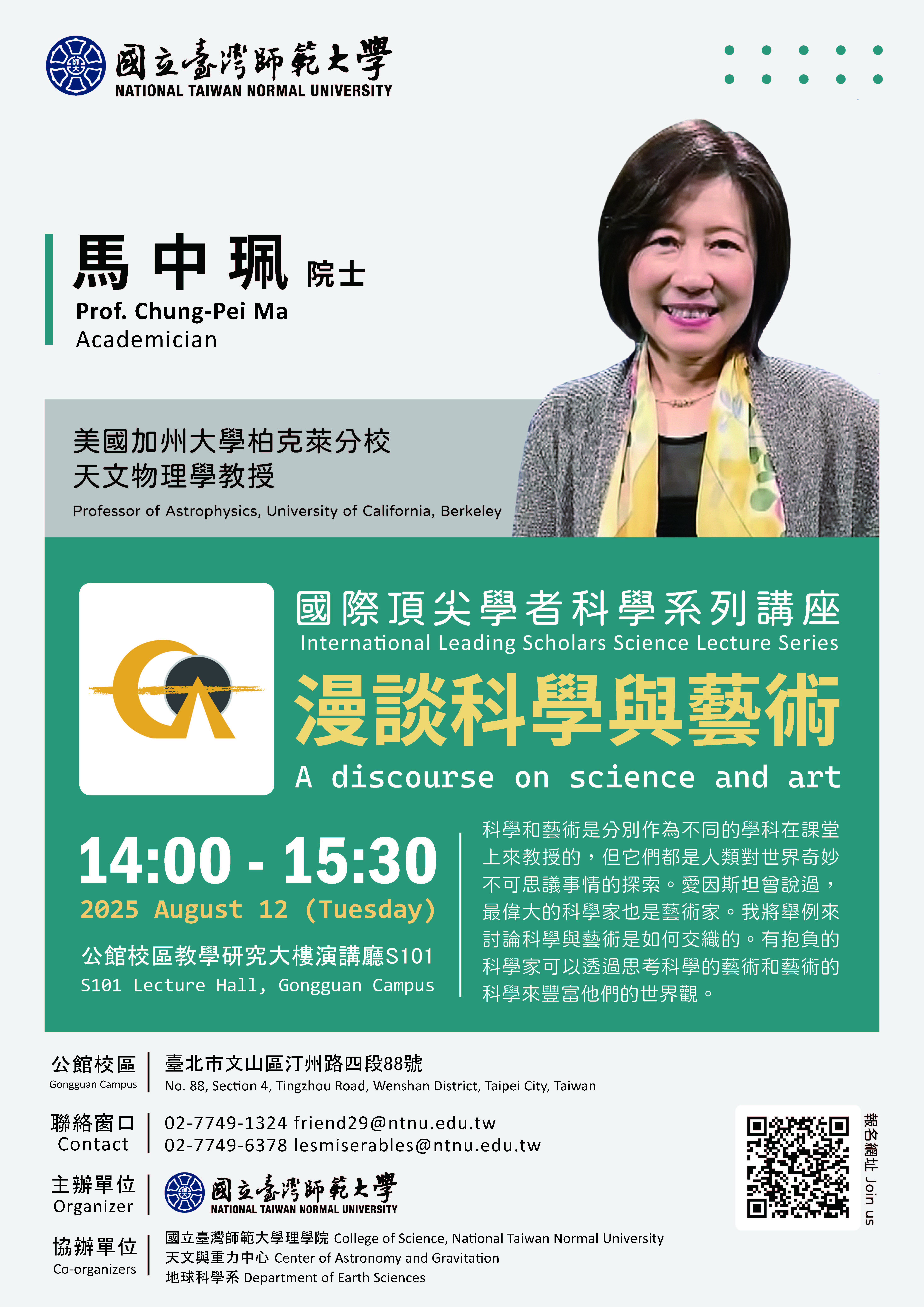 | 標題 | 轉知: 國際頂尖學者科學系列講座:漫談科學與藝術 |