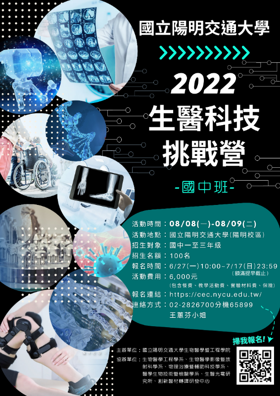 | 標題 | 2022 生醫科技挑戰營國中班暑期營隊 |