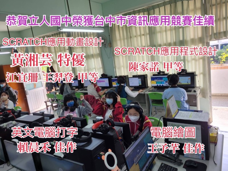 恭賀本校榮獲台中市資訊應用競賽國中乙組團體總成績第三名,指導老師魏金羊、賴俊諭老師