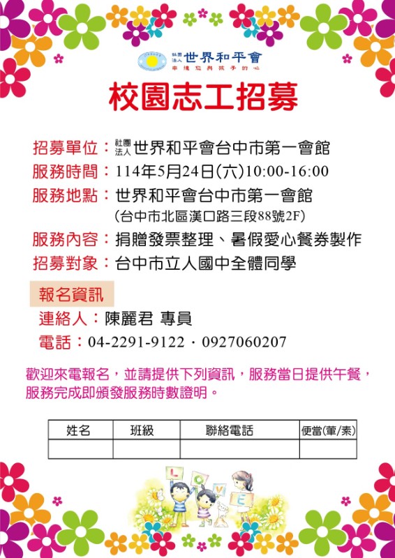 世界和平會校園志工招募