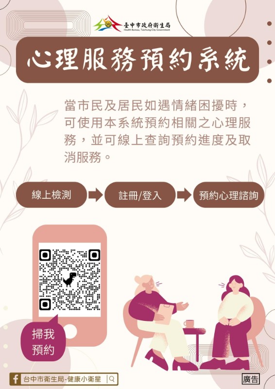 若有情緒困擾問題,可撥打1925安心專線或使用「心理服務預約系統」預約心理諮商