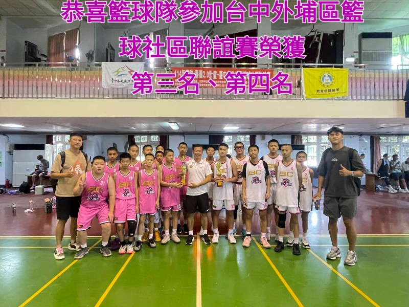 賀籃球隊參加114年臺中市外埔區籃球社區聯誼賽賽榮獲第三名、第四名 指導老師:張艾尼瓦爾老師、張厚松老師