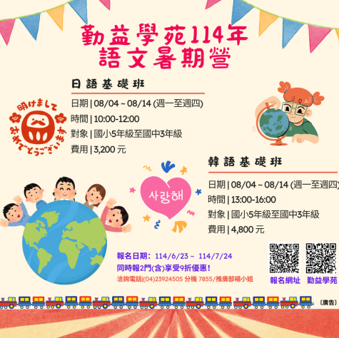 相關課程洽詢電話:(04)239245050分機7855,推廣部楊小姐。 |