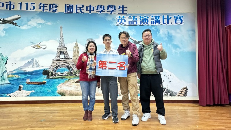賀:廖梓茽同學參加115年英語演講比賽榮獲第二名 指導老師 李雪慧老師
