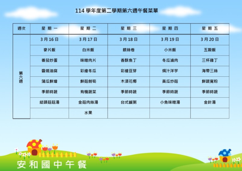 114學年下學期第6週菜單