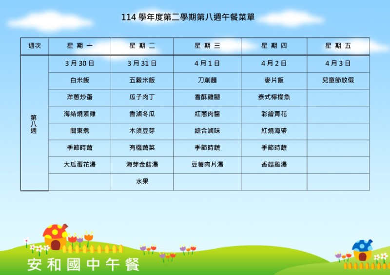 114學年下學期第8週菜單