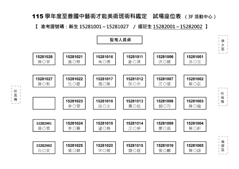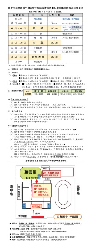 | 標題 | 公告 ★★★ 至善美術班鑑定考試試場座位表 & 鑑定時程及注意事項 ★★★ |