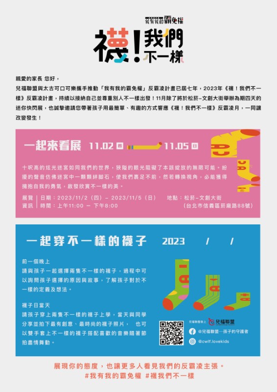 | 標題 | 兒福聯盟-《襪!我們不一樣》反霸凌月活動 |