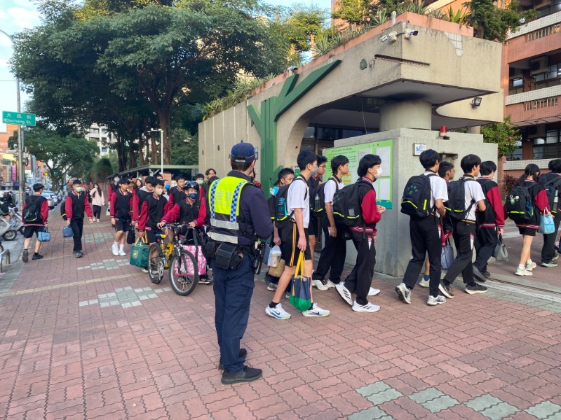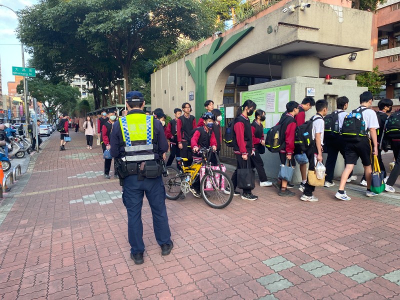 照片為12月23日轄區派出所警員到校與本校同仁共同維護學生上放學安全。