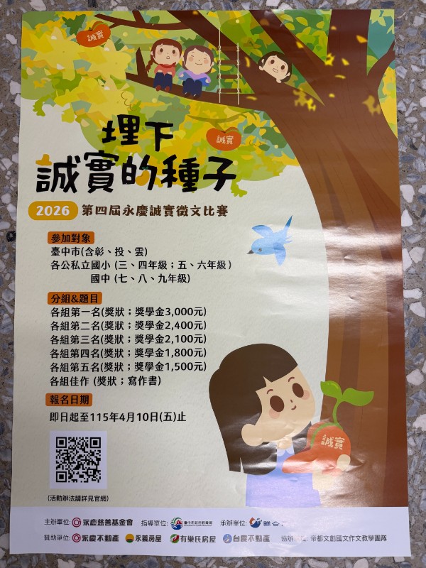 永慶誠實徵文比賽,請踴躍報名