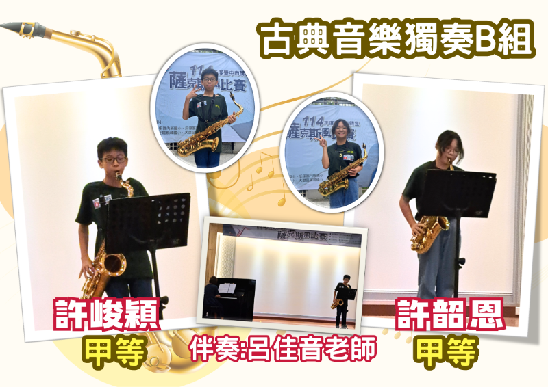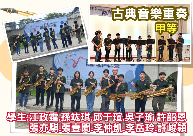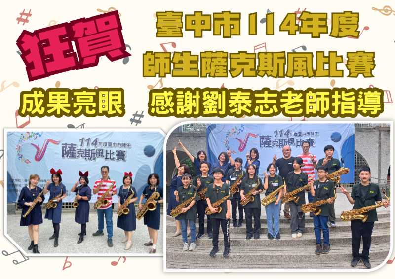 狂賀!!本校參加114年度台中市師生薩克斯風比賽成果亮眼!!