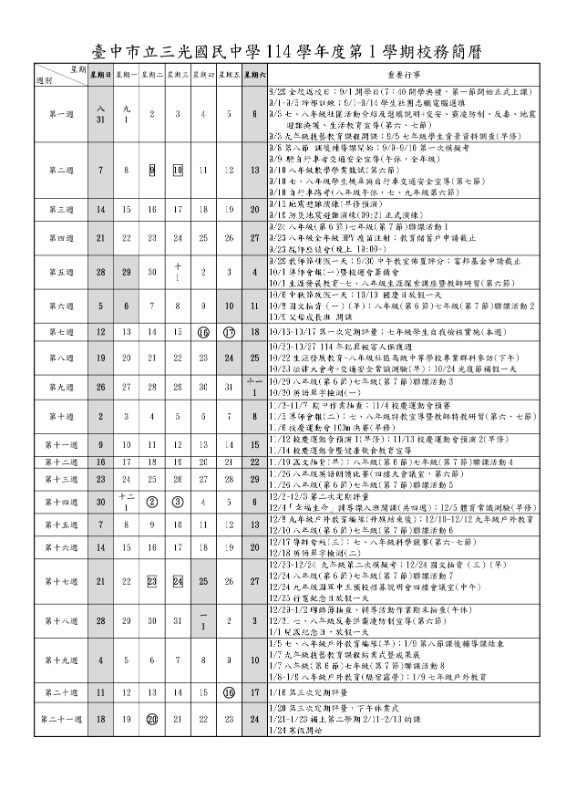 114學年度第一學期校務行事簡曆,請同學及家長參閱!!