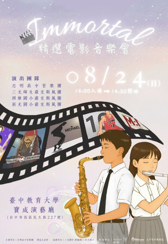 本校師生薩克斯風團參與8/24(日)精選電影音樂會,歡迎蒞臨參與音樂饗宴!!!