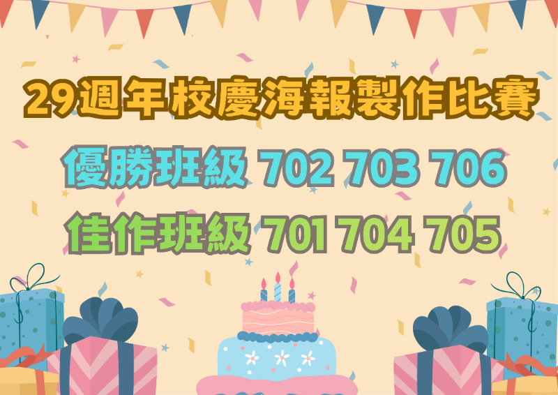 | 標題 | 29週年校慶海報比賽成績公告 |