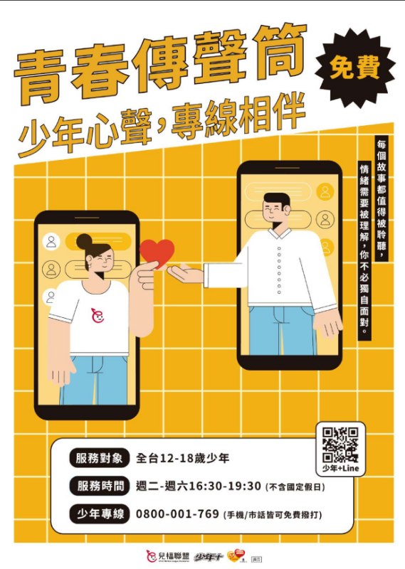 另有少年專線服務,傾聽與陪伴少年煩惱。