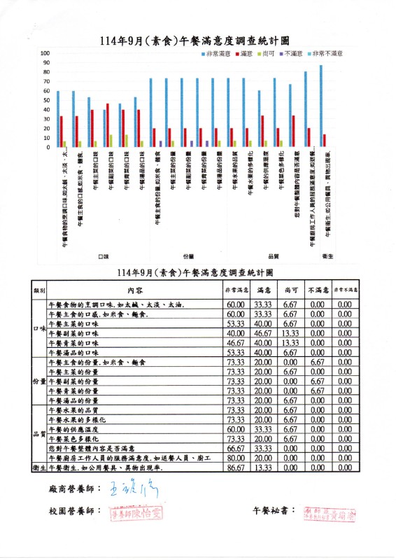 114年9月營養午餐滿意度(葷/素)