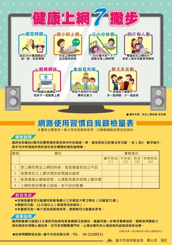 轉知本府衛生局為強化網路成癮防治議題之宣導,提升網路成癮行為問題之認識