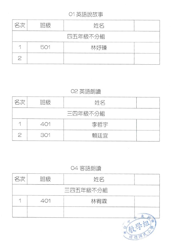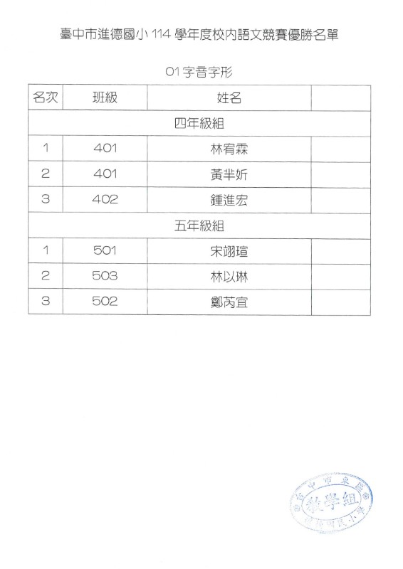 114學年度進德國小校內語文競賽結果公告,詳見附件。