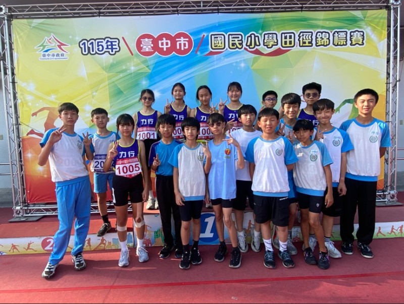 田徑隊3月18日至20日參加115年臺中市國民小學田徑錦標賽,締造佳績。獲獎如下: 1. 池筠喬:國小女生甲組100公尺第二名 2. 何妍萱:國小女生甲組60公尺第三名,100公尺第六名 3. 葛祐廷:國小男生甲組60公尺第五名 4. 楊杰睿:國小男生甲組跳高第八名 5. 許峻楷:國小男生甲組200公尺第八名 6. 王尹凡、池筠喬、劉姿彤、何妍萱:女童組4X100公尺接力第二名 7. 國小女生甲組:徑賽錦標 第二名 8. 國小女生甲組:田徑總錦標 第三名