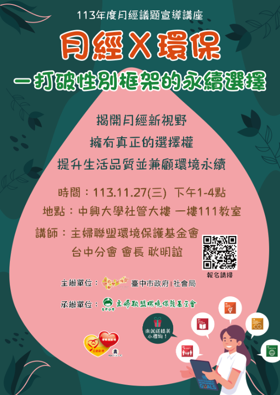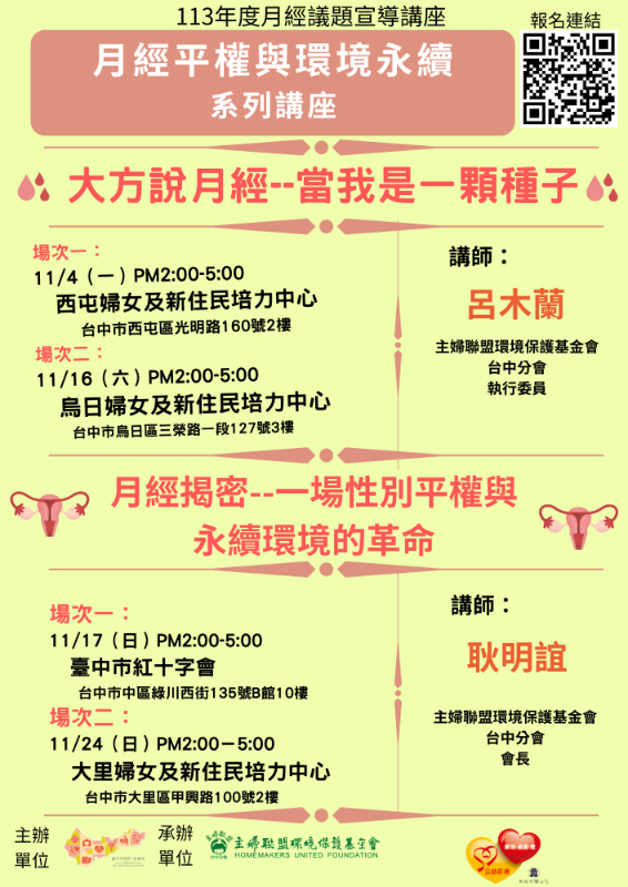 轉知台中市政府教育局委託主婦聯盟環境保護基金會臺中分事務所辦理「113年度月經議題宣導講座」 |