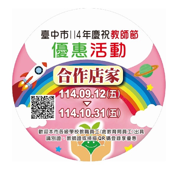 轉知有關本市114年度教師節優惠店家活動資訊,鼓勵各位同仁踴躍參與
