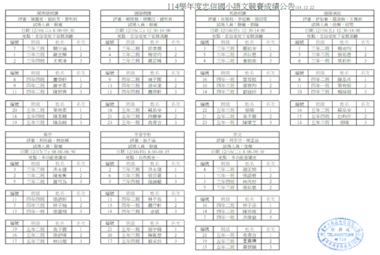 114學年度忠信國小校內語文競賽公告