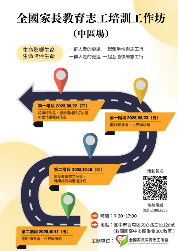 轉知~114年全國家長教育志工培訓工作坊(中區場)活動
